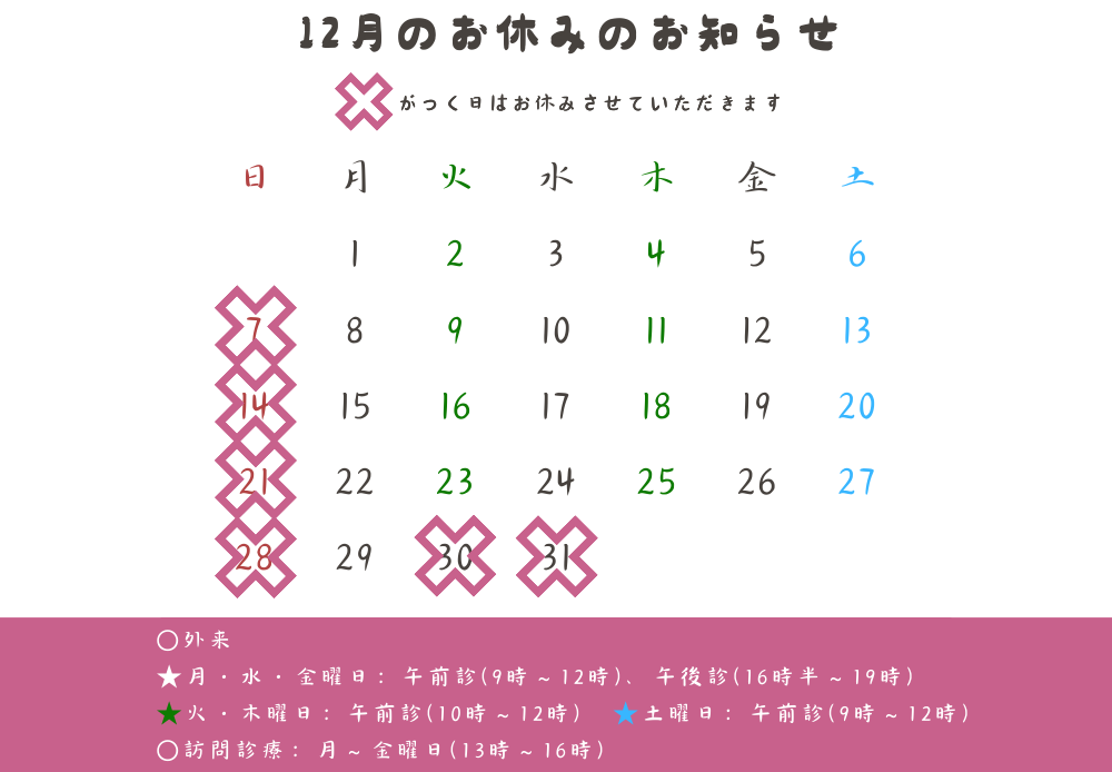 📅 12月の診療予定について