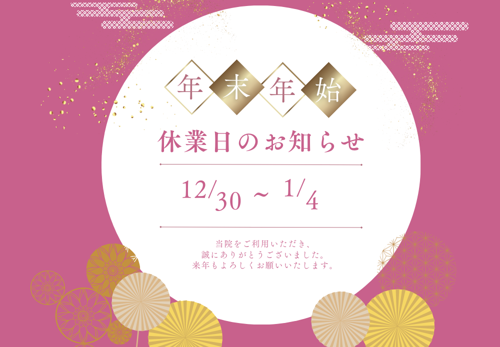 年末年始は 12/30〜1/4が休診となります。