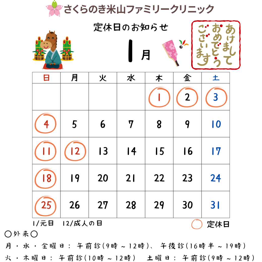 (1月12日 成人の日は休診)