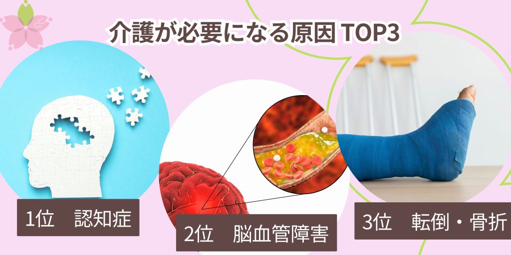 介護が必要になる理由の第2位が「脳血管障害」、第3位が「転倒・骨折」となっております。現在の血管や骨の状態を知る事で、病気のかかりやすさがわかり備えることができます。